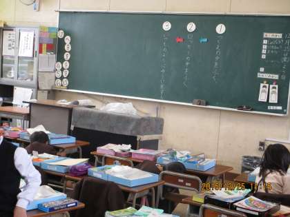 2学期の終業式を、各教室でテレビ放送で行いました。校長先生の話を聞いたり、冬休