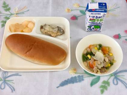 あじのレモンマリネは、あじは塩こしょうで下味をつけ、片栗粉をまぶし、熱したなたね油で揚げます。綿実油を熱し、たまねぎをいため、いたまれば砂糖、塩、米酢、ワインで味つけし、最後に調理員さんが生のレモンを手作業で絞ってくださったレモン汁を加えて煮たものをかけてあじにからませたらできあがりです。生のレモンのさわやかな風味が、素敵にしあげてくれます。