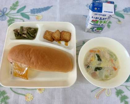 はくさいのクリーム煮は、綿実油を熱し、料理酒で下味をつけた鶏肉をいためます。更に、にんじん、たまねぎ、はくさいの順にいため、湯を加えて煮ます。煮上がれば、しいたけ、チンゲンサイを加えて煮、塩、こしょう、うすくちしょうゆ、中華スープの素で味つけし、最後に牛乳、クリームを加えて、水溶き片栗粉でとろみをつけます。野菜もトロトロで体ホカホカ温まります!