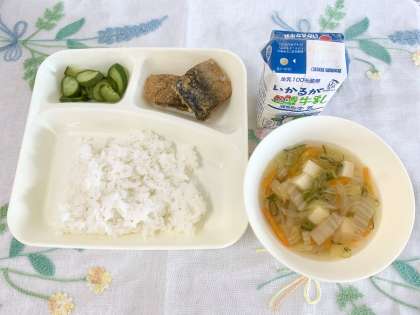 さばのカレーたつたあげは、さばはしょうが汁、こいくちしょうゆ、カレー粉で下味をつけ、さばのつけ汁をきり、片栗粉をまぶし、熱したなたね油で揚げます。1人2切れずつと豪華です!カレー味になっているので、魚が苦手な児童も食べやすかったようです。「食べられたよ!」とニコニコ笑顔で教えてくれました!!嬉しい☆
