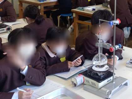 温度と水が変化していく様子を、少しドキドキしながら真剣な眼差しで観察していました。