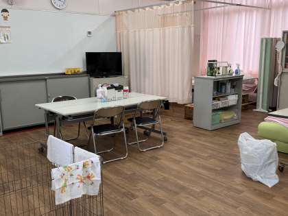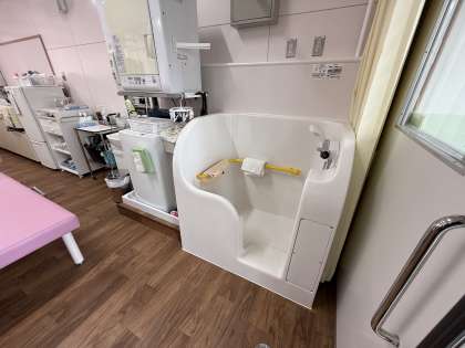 新しい保健室には、シャワー室ができました。ケガの汚れを落としたり、