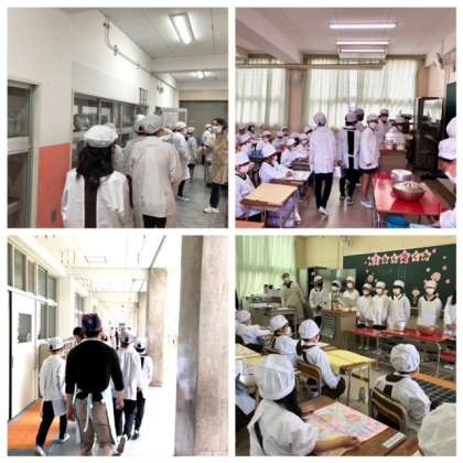 昨日の給食初日から、6年生が1年生の給食を運んでいます。今日も、「1年生の給食を取りにきました。」とあいさつをして、丁寧に1年生の教室に運んでいました。1年生から「ありがとうございました。」とお礼を言われると、照れながらうれしそうに「どういたしまして。」と返事をしていました。