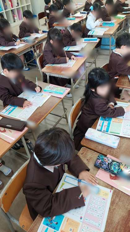 月曜日から始まるひらがなの学習に向けて、運筆練習をしました。まずは、鉛筆の持ち方は姿勢などを確認しました。その後、ひらがなのワークを使って、運筆練習をしました。みんな集中して取り組んでいました。