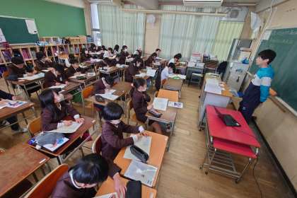 考えたら、ペアや班で確かめ合い、分からない友だちには教え合いをしています。