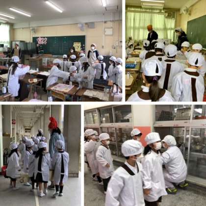 ビーフシチューは、小麦粉を使わず、上新粉でとろみをつけています。小麦アレルギーの人でも食べることができるようにしています。今日のビーフシチューには、ラッキーにんじんが入っていました。給食をとりにきた児童からは、「今日の給食にラッキーにんじんが入ってるんやって!」と、うれしそうな声が聞こえてきました。