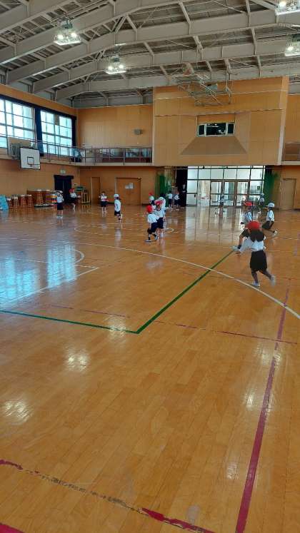 体育科の学習では、ラジオ体操や体幹トレーニング、鬼遊びなどをしています。体操隊形に広がったり閉じたり、広い講堂や運動場では難しいですが、上手にできていました。鬼遊びでは、楽しそうにタッチしたり逃げたりしていました。