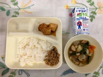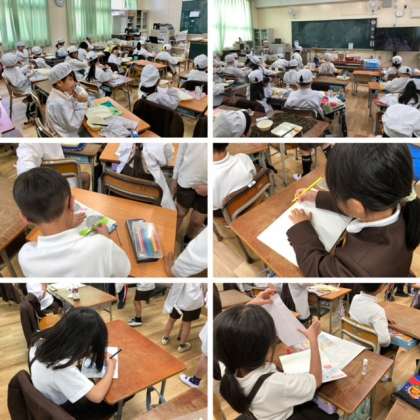 2年生の教室では、一つ一つのメニューを静かに味わって食べていました。「どれもおいしい!!」と言っていましたが、特におすすめは「あつあげのしょうゆだれかけ」だそうです。早く食べ終わった人は、席に座って自由帳に絵を書いたり、塗り絵をしたりして過ごしていました。食後はゆっくりと休むことが大切です。これからも続けてほしいです。