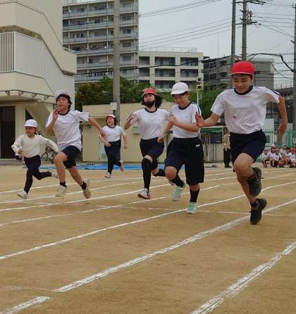 先生も子どもたちに負けじと、いっしょに走っていると、、、バキッ!イテテテテ