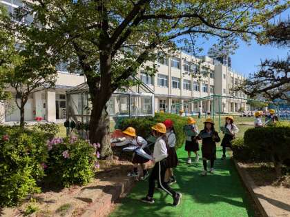 理科の学習で春の様子を観察しに行きました。ダンゴムシや桜、アリや白い花、黄色い花などたくさんの春を発見しました。