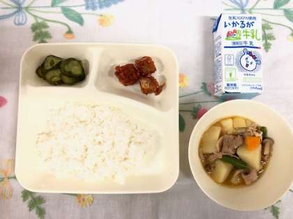 今日の給食は、大人気メニューのまぐろのオーロラ煮でした。3年生や4年生では、全部おかわり制度で全部のおかずをおかわりする人がいました。さらに、「まぐろのオーロラ煮をおかわりする人?」という担任の先生の声かけに何人もの手があがり、10人以上が列を作っていました。1年生に「今日の給食で何が1番おいしかった?」と聞くと、いつも、どの児童に聞いても、「全部!!」といううれしい返事が返ってきます。「今日は特にどれがおいしかった?」と聞くと、「まぐろのオーロラ煮がおいしかった。」「魚が好きだから。」「まぐろがやわらかくておいしかったから。」と言っていました。