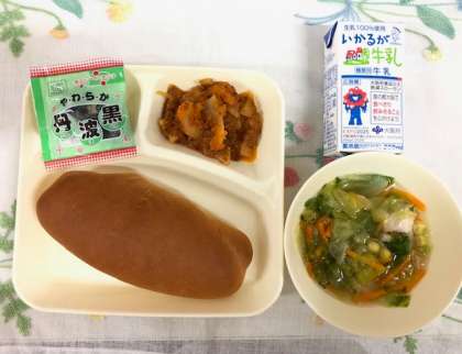 この日の給食でも「今日の給食で何がおいしかった?」と1年生に聞くと、いつものように「全部!!」と返事がかえってきました。「今日も全部なの?」とさらに聞いてみると、「だって本当に全部おいしいんだもん!!」という答えでした。おすすめは何かを聞いてみると、「じゃがいものミートグラタン」と正式な献立名を答えていました。献立名をしっかりと覚えている1年生はすごいなぁと驚きました。
