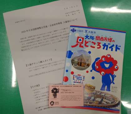 大阪府教育庁が実施する「2025年日本国際博覧会児童・生徒招待事業」の入場券が届きました。