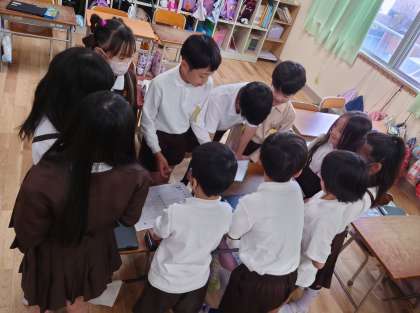 毎週木曜日の児童集会では、きょうだい班で楽しいゲームをします。