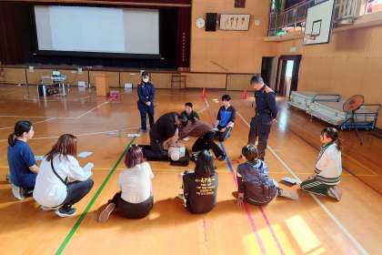 年に1回、消防署の方に来ていただき、救命救急について学ぶなかで、命を救うためにするべきことを再確認します。