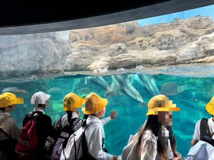 あまりの可愛さにみんな歓声をあげながら、興味深々に見学しています?