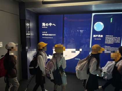 エイ、マンタ、マンボウ、シュモクザメ…初めて見る魚や、その大きさにもみんなビックリです!