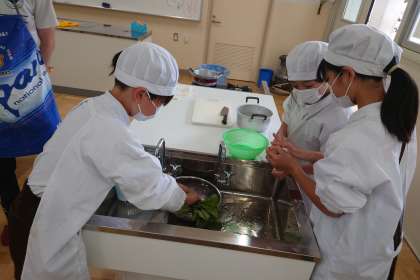 メニューは「お茶」「青菜のおひたし」「ゆでいも」です。