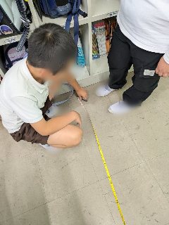 算数の学習では長いものの長さを測る学習をしています。今日は教室の縦と横の長さを測りました。毎日過ごしている教室の大きさを実感したようでした。
