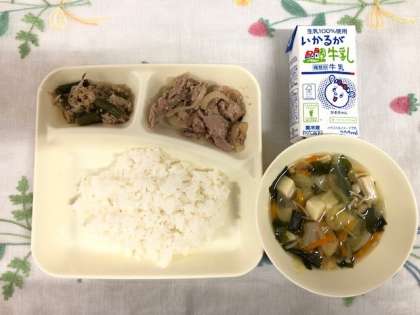 暑い日が続いています。7月の給食では、しょうがやにんにく、カレー粉、梅肉などを使って、食欲がわくように工夫しています。今日の給食の豚肉のしょうが焼きにもしょうがが使われていました。明日の給食は、カレー味のスパゲッティです。しっかりと給食を食べて栄養をとり、夏ばてを予防しましょう。