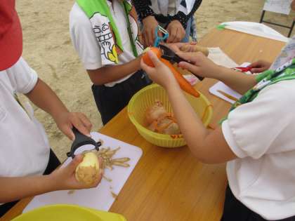 まきを組み立てる作業に苦戦しながらも頑張っています。