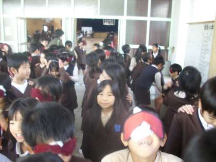 目の不自由な人の誘導(手引き)の体験を行いました。