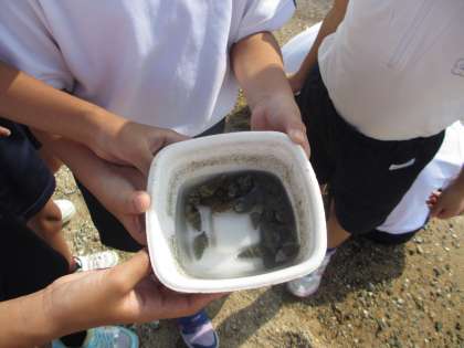 砂浜には、貝やカニをたくさん捕まえていました。また、砂を掘ってトンネル作りをしている子たちもいました。