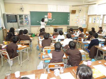 2、3時間目に歯科衛生士の先生に来ていただき歯磨き指導が行われました。