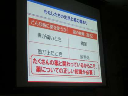 学年全員が多目的ルームに集まり、薬の正しい使い方や怖さ、飲む時間やタイミングなど、丁寧に教えていただきました。子供たちも真剣に話に聞き入り、一生懸命に学習する姿が見られました。