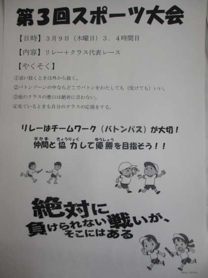 第3回スポーツ大会を3月9日木曜日に開催することが決まりました!!!