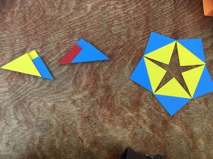 算数科「かたちあそび」の学習で教科書に載っているロケットや家のほかに自分たちで考えて好きな形を作りました。子どもたちの想像力には大変驚かされます(^U^◎)