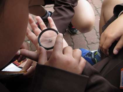 さっそく虫眼鏡を使って、脚の数を数えていました。