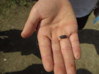 校庭に出て生き物や植物の観察をしていると、だんご虫がたくさん出てきました。