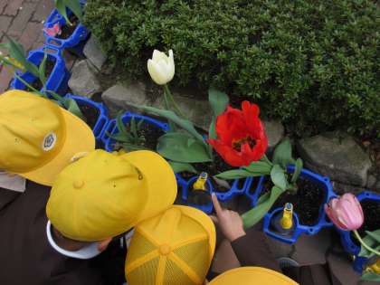 チューリップの花びらの中を観察している子や桜の花を観察している子もいてみんなやる気いっぱいです(*^_^*)