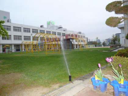 今年度も、定刻に水を撒くスプリンクラーが始動しました。芝生のさわやかな香りがいっそう強く感じられます。