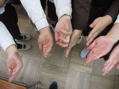 検査の後は、アルコールで手をふいて汚れをチェックしました。