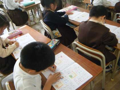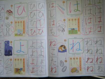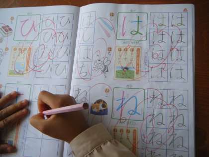 ひらがなの学習も進んできました。子どもたちは、とめ、はね、はらいに気を付けながら丁寧に書いています。毎日の宿題も習った事に気を付けながら取り組めています。直しもしっかりとこなしています。この調子でがんばってほしいと思います。