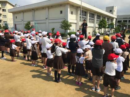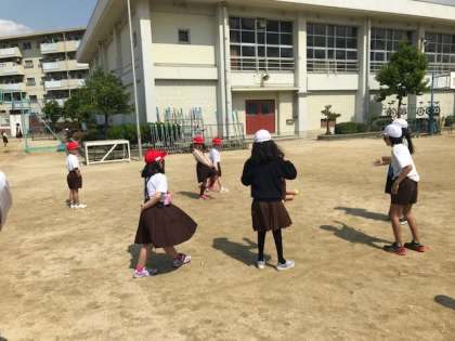 後半は、運動場で実際に整列をして、1年生と遊ぶふれあいタイムを設けました。