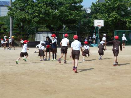 運動場でも6年生に遊んでもらい、とても楽しそうに活動していました。