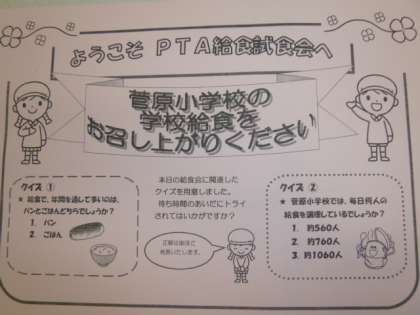 給食試食会では栄養士から学校給食についてのお話をさせていただきました。