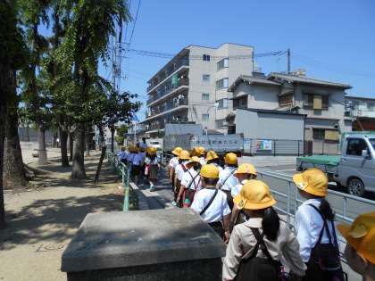 1年生は公園めぐりをしました。菅原天満公園と菅原公園に行きました。それぞれの公園の中にあるものを一生懸命に探しました。「先生、とけいがあったよ。」「先生、でんわがあったよ。」元気いっぱいに公園の中を探し回りました。またお家で話しを聞いてあげてください。