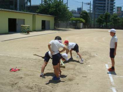 立ち幅とびの記録をもとに、どれだけ飛べるか挑戦です!
