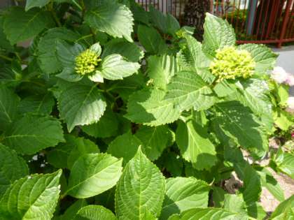 下の写真は、今にも咲きほころびそうなアジサイ。