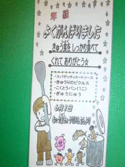 食缶を空っぽにして返してくれたクラスには「よくがんばりました」カードを配りました。