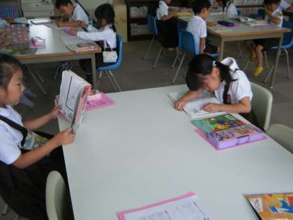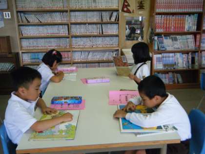 図書の時間の様子です。読みたい本を探して、一生懸命に読んでいます。まだ、1年生ですので、指で字を確認しながら、小さな声を出して読む姿も見られます。先生からの読み聞かせも大好きです。日曜参観では、水曜日に来ていただいている読み聞かせボランティアさんによる読み聞かせの様子も見ていただけます。楽しみにしていてください。