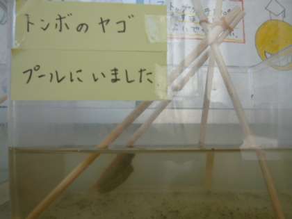 プール開きを前にして、事前に掃除を進めてくれている管理作業員さんが、「ヤゴがいたよ」と届けてくれました。