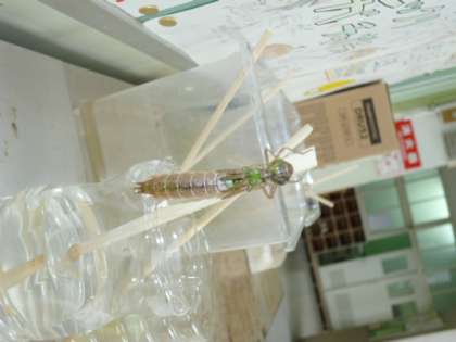 まだ水槽の中にいるヤゴのうち1匹は、脱皮をしてひとまわり大きくなっています、