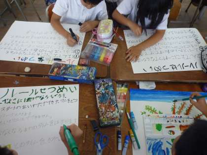 役割を決めて準備をしています。「これだと、1年生わかりにくいで〜」