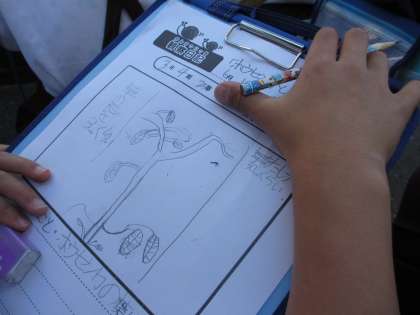 子どもたちは、定規で茎の長さを測ったり手で触ってみたりして観察していました。