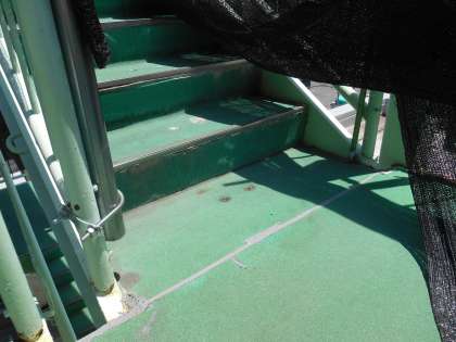 屋上のプールへのぼる階段を管理作業員さんになおしてもらいました。